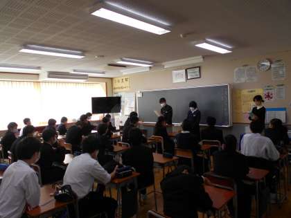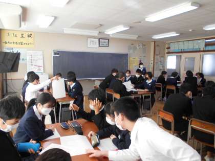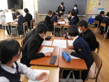 今日の学活の時間は、書記会メンバーの進行で、「月世界から脱出」というコンセンサスゲームを行いました。クラスメートとの仲を深め、あたたかい学年をつくろうというねらいで、書記会のメンバーが企画・提案してくれた活動です。