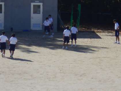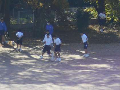 男子保健体育のサッカーの授業では、ペアでドリブル、そして、それをカットする練習をしました。うまくできるようになったでしょうか。