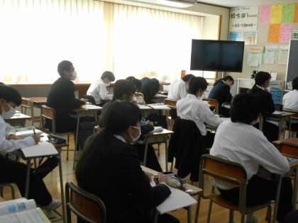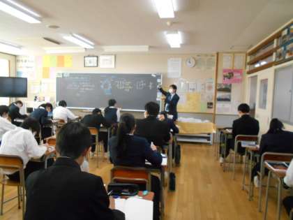 理科の授業では、圧力の勉強をしています。水中ではどのように圧力がかかるのか、図を描きながら理解を進めました。