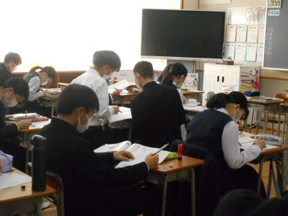 英語の授業では、Reading Testをしていくクラスもありました。スムーズに、正しい発音で読めるかどうか、そして、暗記して読めた人にはALTの先生からスッテッカーのプレゼントがありました。