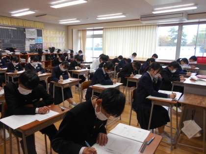 中教研学力調査を行いました。1日目の今日は、国語、理科、英語の3教科でした。最後まで集中して取り組んでいました。明日は、社会、数学です。学習の成果を発揮できるといいですね。