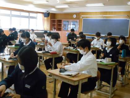 音楽の授業では、アルトリコーダーでC♭を使って演奏することに取り組みました。うまく演奏できたでしょうか。