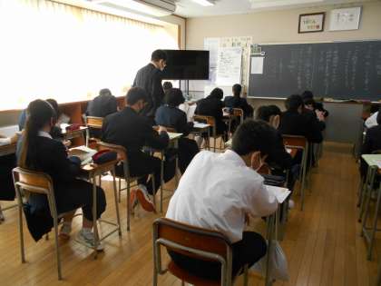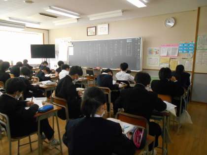国語の授業では、これまで取り組んできた古文の暗唱テストがありました。きちんと覚えて言えたでしょうか。