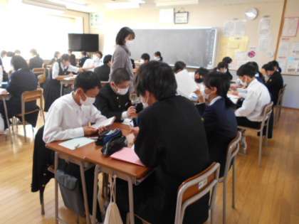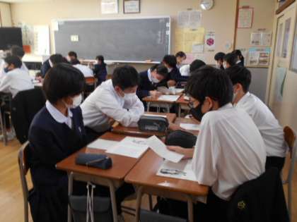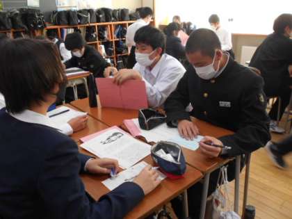 「わたしがちいさかったときに」の朗読を聴いて感じたことを、班で語り合いました。