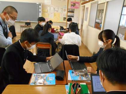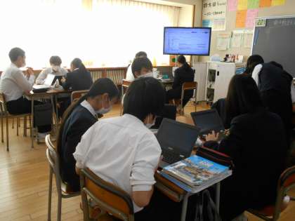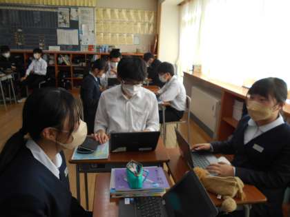 社会の授業では、「南中校区で出店するとしたら」という設定で、グループで案を練りました。どんなアイディアにまとまるのか興味深いです。