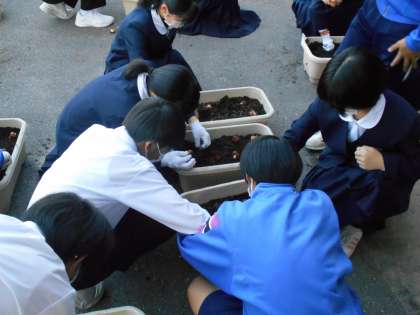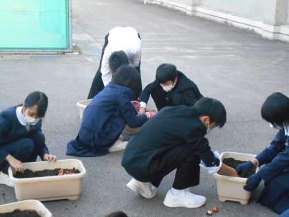 環境委員会では、チューリップの球根植えを行いました。委員の皆さんは、ひと冬を超し、春にかわいらしい花が咲き誇ることを目に浮かべながら、植えたことと思います。生徒のみなさんも、そして、教職員も、共にたくましく今年の冬を乗り越えたいと思います。