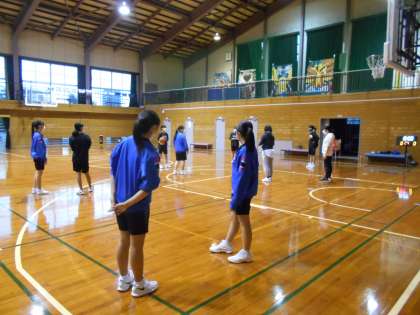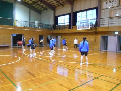 女子バスケットボール部は、全面使える日なので、コーチの指導の下、ポジションごとの動きを確認しながら練習を進めました。