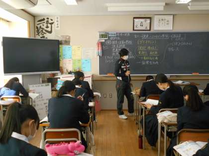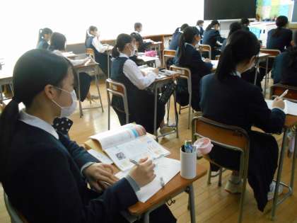 女子保健体育では、環境と健康について考えており、体に対する水分の重要性や公害等について勉強しました。