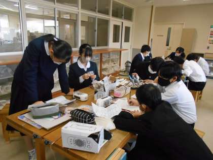技術の授業では、ラジオが完成し、オリジナル説明書を作っているところでした。分かりやすく書けたでしょうか。
