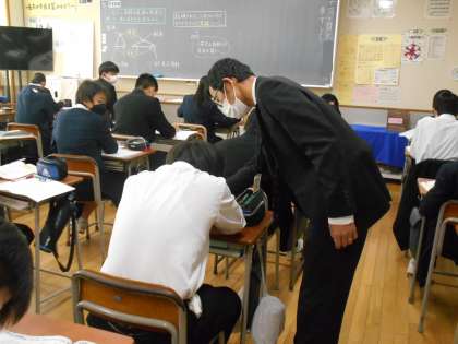 数学の授業では、二等辺三角形の底辺の性質を使って角の大きさを求めました。いろいろな問題に取り組むことで、基本が理解できたと思います。