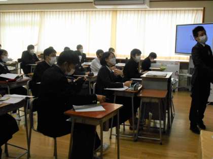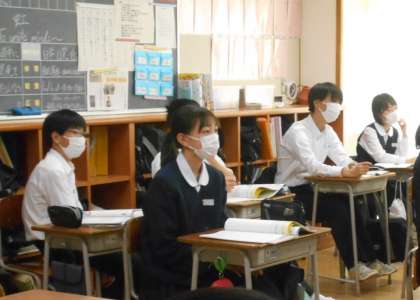 英語の授業では、英単語の意味の確認をしているクラスもありました。一つ一つ声に出して練習をして、身に付けていきましょう。