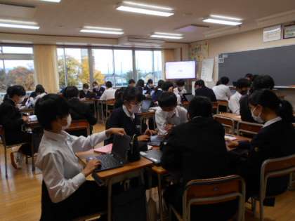 後半は、グループごとに戦争、原爆について知っていることを挙げて関連付けていました。この後、個人でテーマを決めて調べ学習を行っていきます。
