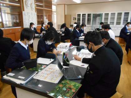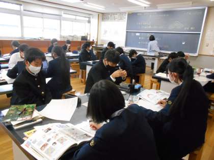 美術の授業では、誰が、どんなときに、何のために文様を使うのかテーマを考えました。