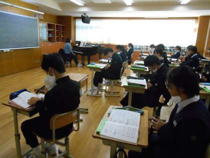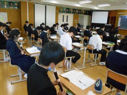 音楽の授業では、 アルトリコーダーでファの音を使って演奏することに取り組みました。ファの音をうまく出せたでしょうか。