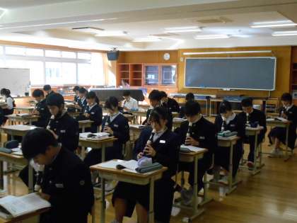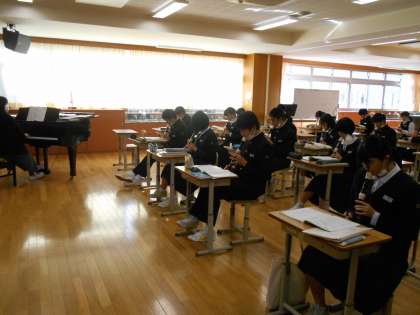 音楽の授業では、アルトリコーダーに取り組みました。高校では取り組むことはないかと思います。そう思うとより楽しんで取り組んでほしいと思います。