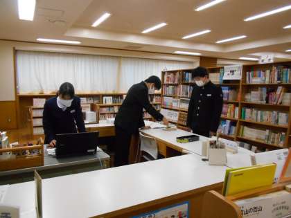 今朝の文化委員会の図書貸し出しの様子です。朝の利用は、10人程度のようですが、お昼や放課後等、自分の都合のよい時間に合わせて、どんどん利用しましょう。新刊も続々入っています。