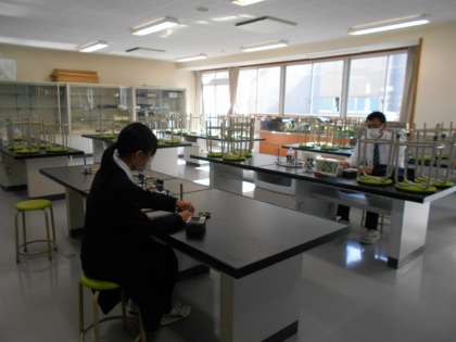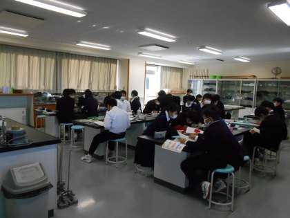 理科の授業では、一人ずつガスバーナーの使い方の実技テストがありました。待っている間に互いに確認したようです。うまくできたでしょうか。