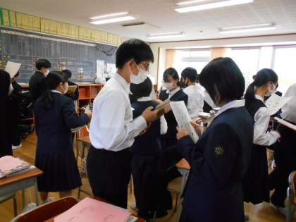 英語の授業では、ALTの先生と、ゲームやインタビュー活動を通してWhoseの使い方を練習し、身に付けることができました。