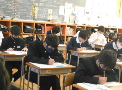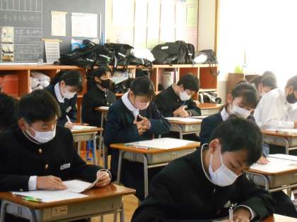 1年生にとって、9教科のテストに取り組むことは2回目です。緊張感が感じられました。