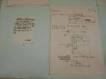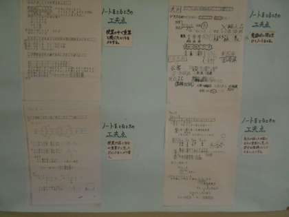 2学年フロアに、上手にノート作りをしている人の例を掲示してあります。重要なところを吹き出しや色ペンで目立つようにしたり、見やすいように意識的にスペースを作ったりするなど、いろいろな工夫が紹介されていました。ぜひ、参考にしましょう。