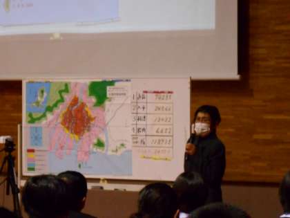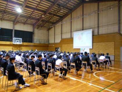お母様の胎内で被爆された石原さんは、お母様から聴かれた話を基に、原爆投下当時の様子をとても詳しくお話をしてくださいました。まるで自分たちがその場にいるかのような光景が浮かぶようなお話ぶりに、身を乗り出して聴いている生徒もたくさんいました。