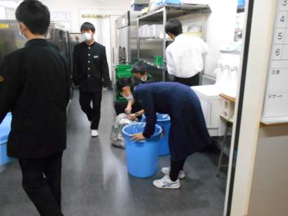 給食委員の活動の様子です。毎日給食室で、スムーズに片付けられるように活動しています。委員の皆さんのおかげ、そして、給食配膳員さんのお陰です。感謝しましょう。