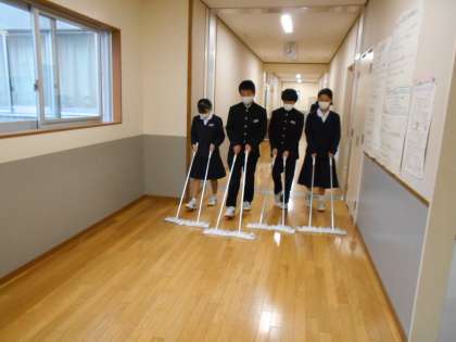 環境委員会のキラキラさせ隊では、生徒玄関だけでなく、リフレッシュデーの翌日ということもあり、廊下の掃除もしました。ほこりが随分取れ、すっきりしました。