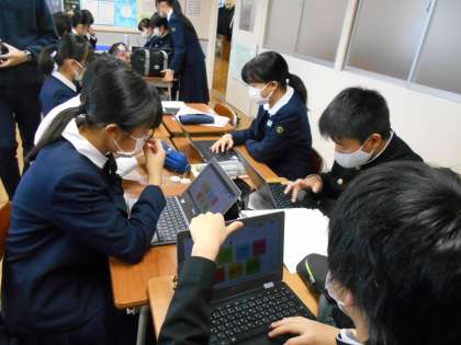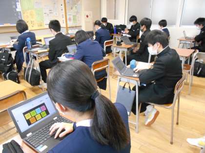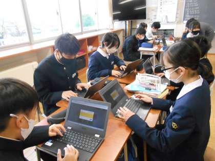生徒会執行部企画の「ありがとうメッセージ」では、Chromebookを使ってメッセージを書き込みました。「誰に書こうかなあ」と迷っている人もいましたが、日頃から「ありがとう」とさりげなく言える人でありたいですね。