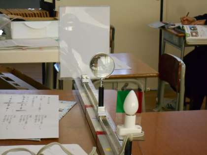 理科の授業では、実験を通して、凸レンズの規則性について明らかにしていきました。