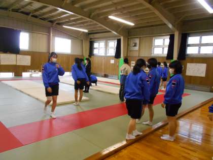 女子保健体育の授業ではマット運動でした。実技テストに向けて、一人ずつ練習を繰り返していました。自分が決めた技はできるようになったでしょうか。