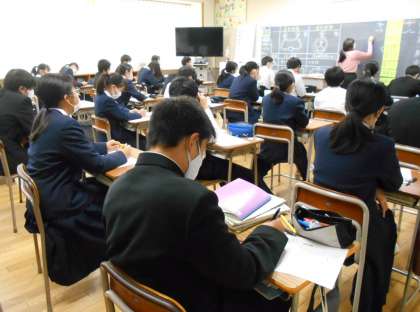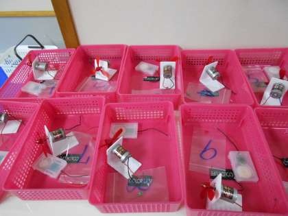 理科の授業では、豆電球のつなぎ方が変わると、どんな違いがあるのか確かめる前に、実験道具の記号について確認がありました。