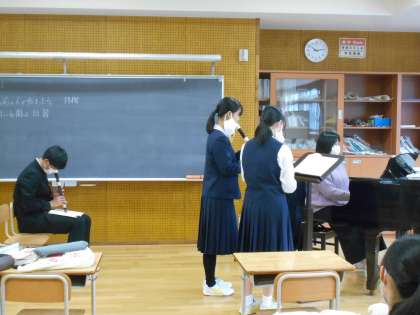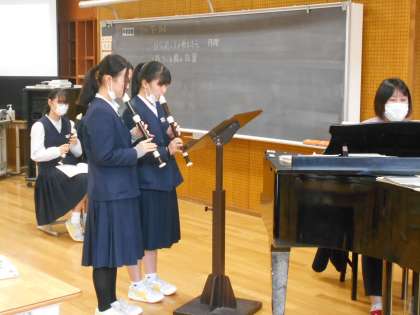 音楽の授業では、アルトリコーダーのテストがありました。みんなとても上手に演奏できていたと思います。