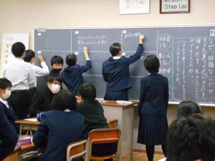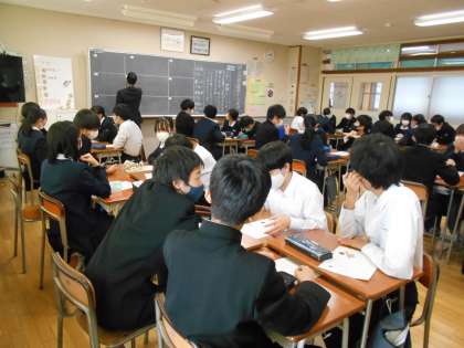 道徳科の授業では、障害がありながら水泳に挑戦してこられた成田真由美さんの実例から、なぜ困難なことがあっても乗り越えられたのかについて、意見交換しながら考えを深めました。