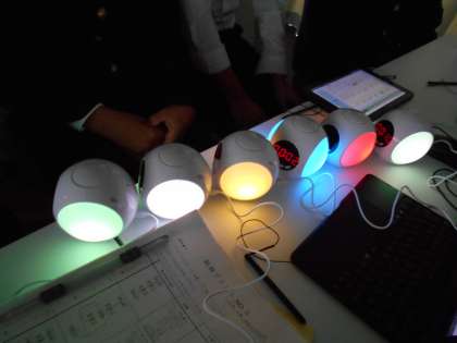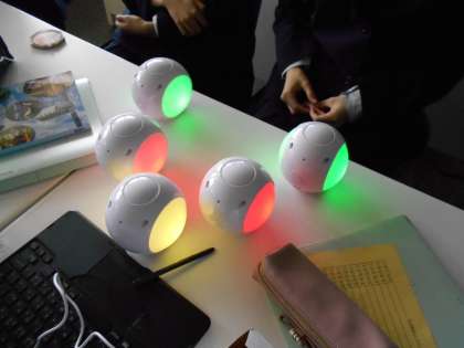 技術の授業では、コロックルの点滅する色や時間を変えて、グループ発表する準備をしています。いろいろな色を絶妙なタイミングで表現できるように頑張っています。