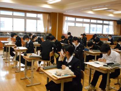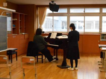 音楽の授業では、アルトリコーダーの実技テストがありました。仲間の発表を聞きながら、各自心の準備をしました。