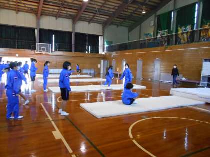 女子保健体育の授業では、前転と後転の練習を順番にしました。手のつく場所やちょっとした勢いもポイントのようです。