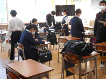 早めに登校して、落ち着いて1日を過ごすこと、そして、学年全体の学力アップを目的として、学年生徒会が企画してくれました。「早勉」に参加した生徒には、学年生徒会作成の入試レベルの問題が配付されます。なかなか難問ぞろいですが、どんどん挑戦してほしいと思います。