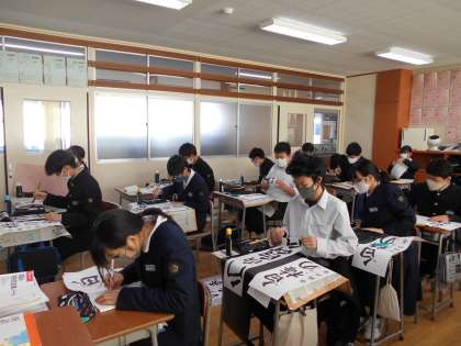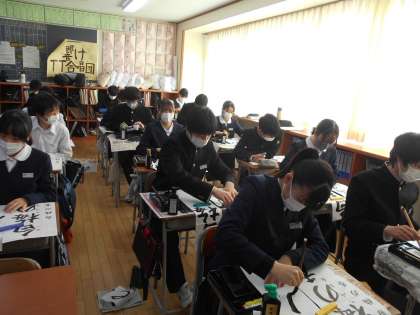国語の授業では、書き初めの練習をしました。2年生は「白梅の香」と書きます。どんな意味かを考えながら書けるようにしましょう。