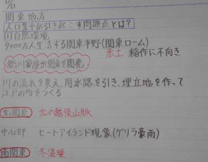 社会の授業では、人口の集中が引き起こす問題について考えており、いろいろな点から意見が出ました。