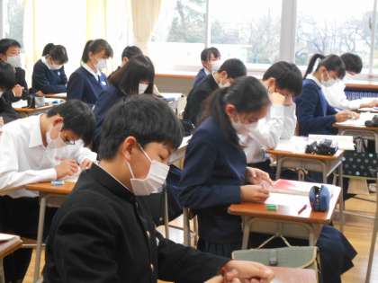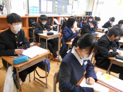 国語の授業では、用言の活用について復習しており、問題の答合わせをしているところでした。