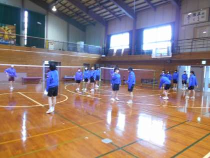 保健体育の授業では、男女ともにバドミントンに取り組みました。ダブルスを組んだ相手と声を掛け合いながら、元気いっぱい取り組みました。