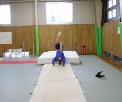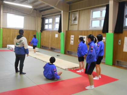 女子保健体育の授業はマット運動でした。難しい技に思い切ってチャレンジしている姿に感心しました。