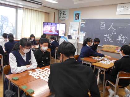 国語の授業では、百人一首の練習をしました。日本文化の継承として、楽しみながらこれからも取り組んでいきましょう。