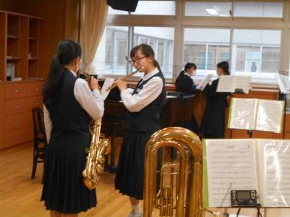 吹奏楽部は、先輩が後輩にアドバイスたり、声を掛け合ったりしながら練習を進めていました。