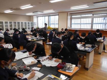 美術の授業は、篆刻の制作に入りました。一生使えるものなので、じっくりデザインを考えましょう。