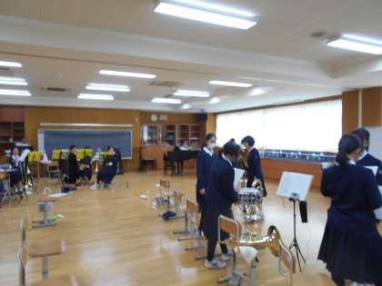 吹奏楽部は、今日のアンサンブルコンテストに向けての練習です。