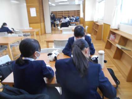 保護者懇談会までの時間を、部活動がない生徒のみなさんは、各学年の控室で宿題や読書に取り組んでいました。