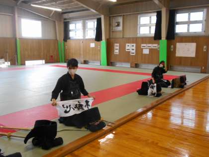 男子バスケットボール部はコート全面を使って活動しました。剣道部は、寒い中でも胴着に着替えて練習です。