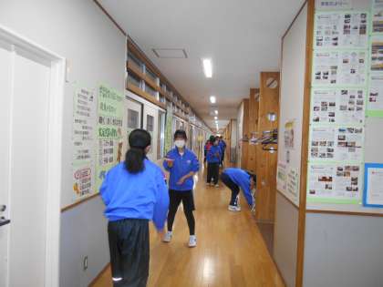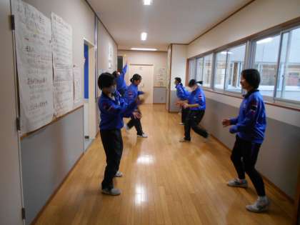 女子ソフトテニス部も室内での練習をしました。5分間、テニスボールを落とさないようにペアで取り組む活動でした。これがなかなか難しかったようですが、頑張りました。