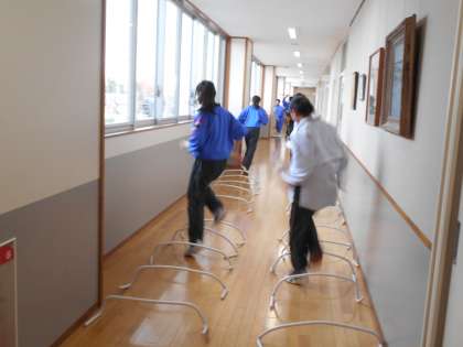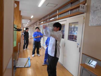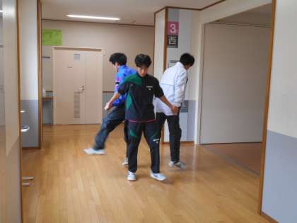 陸上競技部のサーキットトレーニングの様子です。この冬場にできる家庭での体力トレーニングも考えてみましょう。